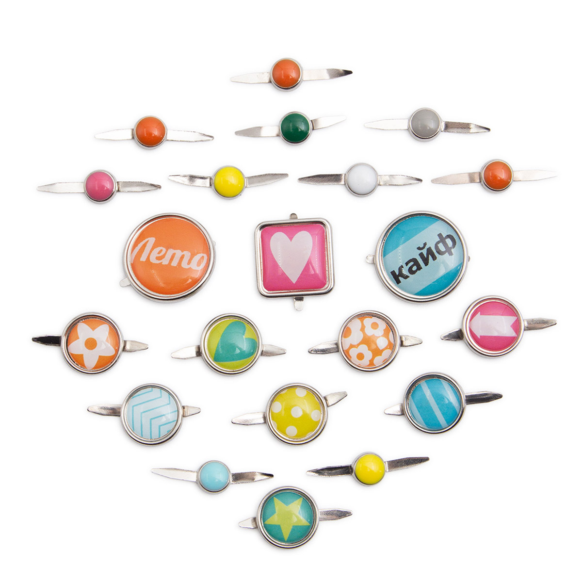 Брадсы используются в скрапбукинге как крепежный элемент и объемная декоративная деталь. Подходят для украшения фоторамок, обложек, открыток. Для установки подойдет любая плотная основа: картон, натуральная или искусственная кожа, ткань.