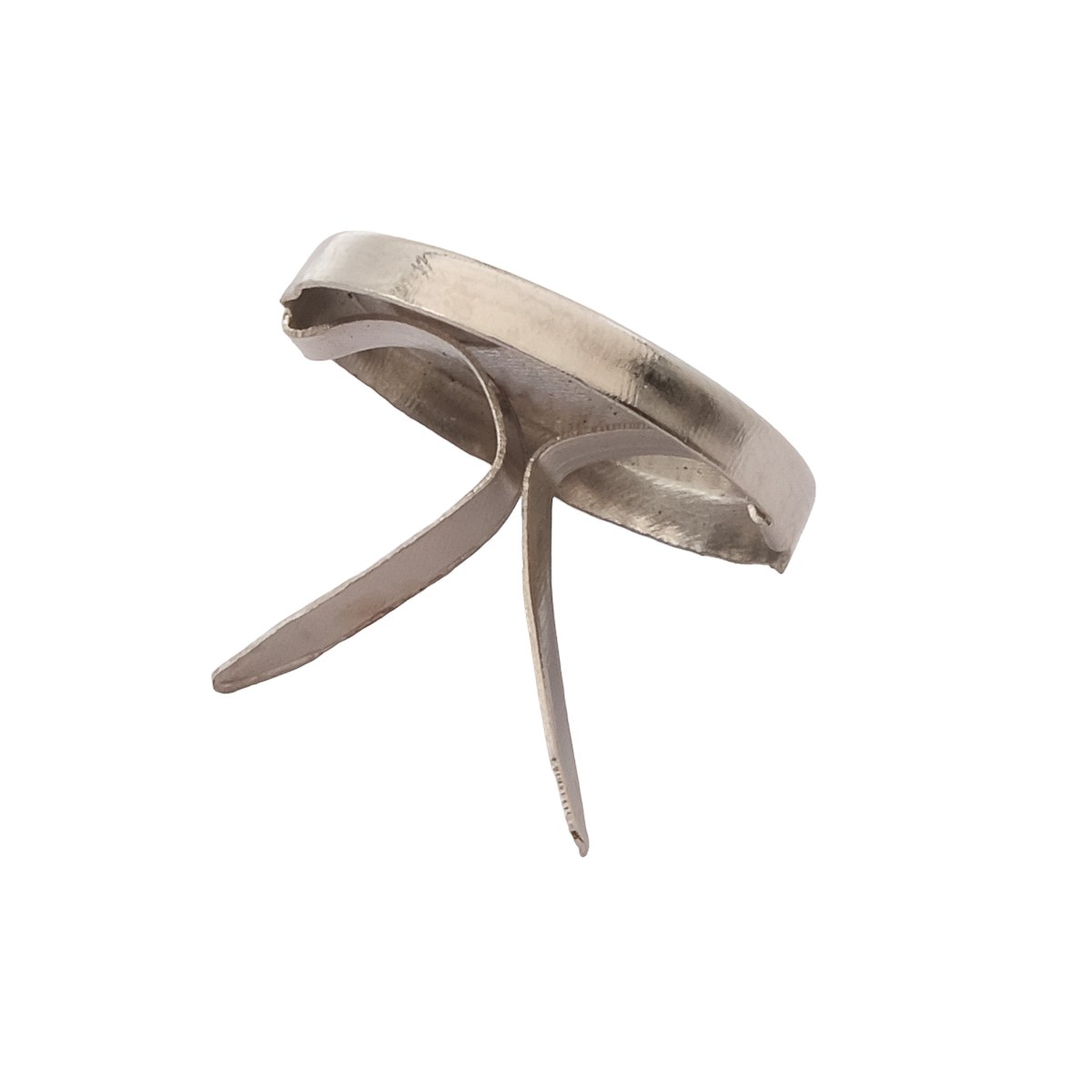 Как установить: проделайте в материале отверстие подходящего размера, вставьте брадс и загните металлические ножки в разные стороны.