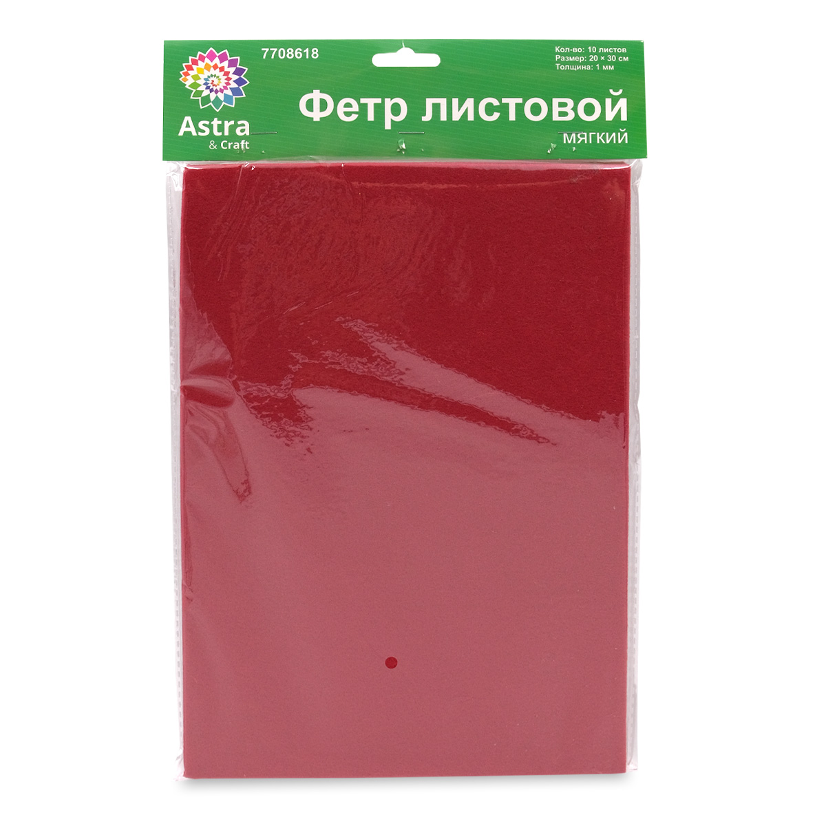 Фетр листовой мягкий, 1.0мм, 20х30см, 10 шт/упак Astra&Craft