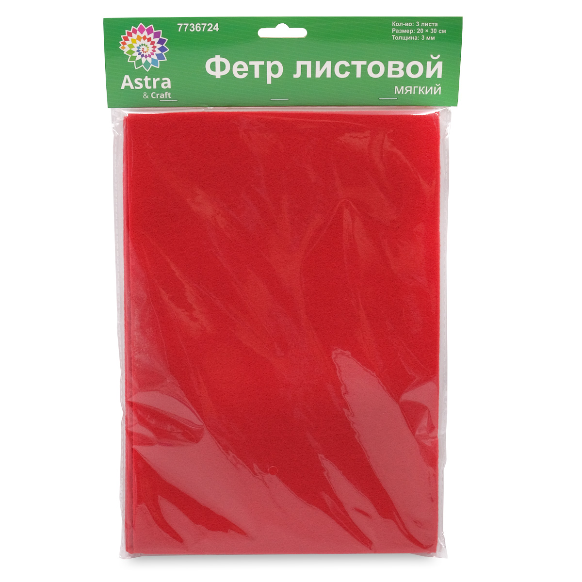 —Фетр листовой мягкий, 3.0мм, 20х30см, 3шт/упак Astra&CraftПластичная замша (фоамиран)Товары для валянияСинель-проволокаПоролонНаборы для творчестваМыловарениеКвиллингБубенчики, колокольчикиПерья, боаЗаготовки для ёлочных игрушекЗаготовки для декорированияИнструментыИзготовление кукол, игрушекПомпоныМеханизмы, стрелки для часовПотальФурнитура для шкатулок и заготовокТовары для рисованияДекоративные элементы и украшенияМиниатюрыПластика