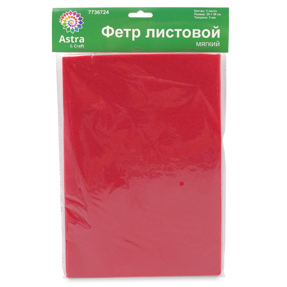 Фетр листовой мягкий, 3.0мм, 20х30см, 3шт/упак Astra&Craft