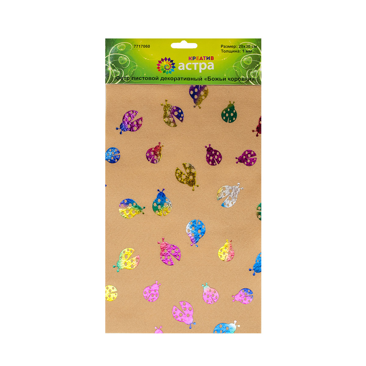 Фетр листовой мягкий ассорти с рисунком 'Божьи коровки', 1.0мм, 20х30см, 3 шт/упак, Astra&Craft