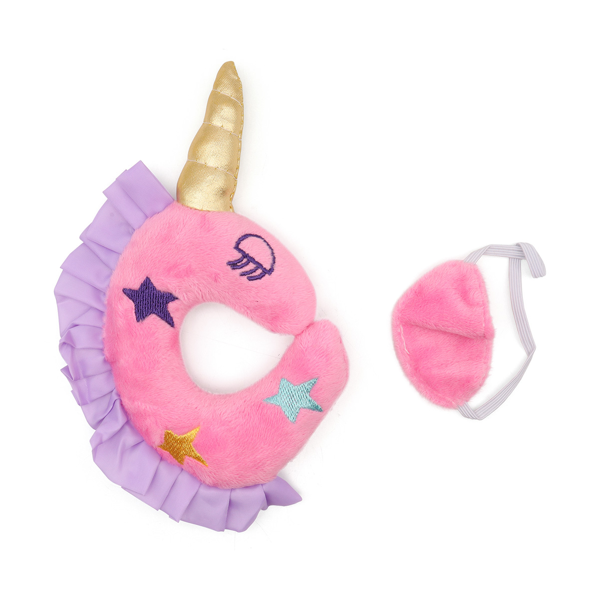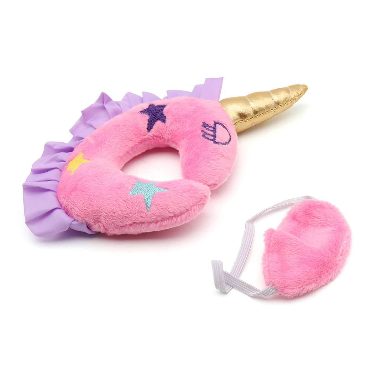 В данный набор для кукол входит: подушка для сна и очки мини (маска/повязка для куклы на глаза для сна). Размер подушки: 18 см. Размер подушки без рога: 11 см. Размер маски для сна: 7х3,5 см.