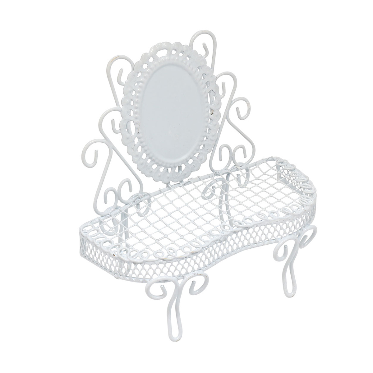 Миниатюрный туалетный столик из тонких ажурных металлических прутьев отличается воздушной легкостью и утонченным дизайном. Миниатюра подойдет для создания интерьерных композиций, румбоксов, декоративного оформления кукольных домиков и детских игр.