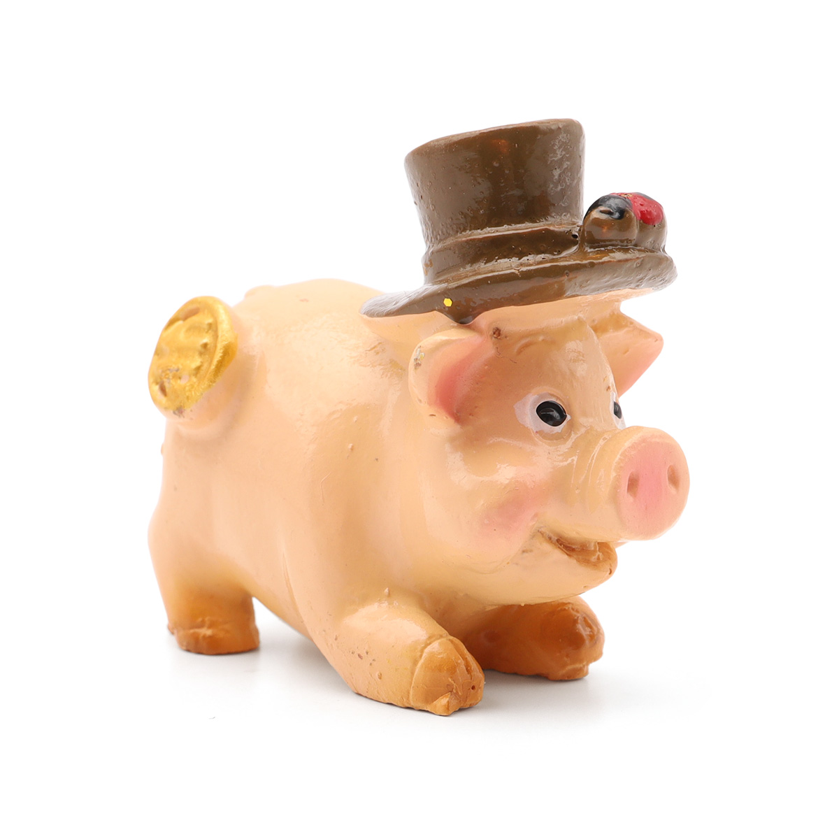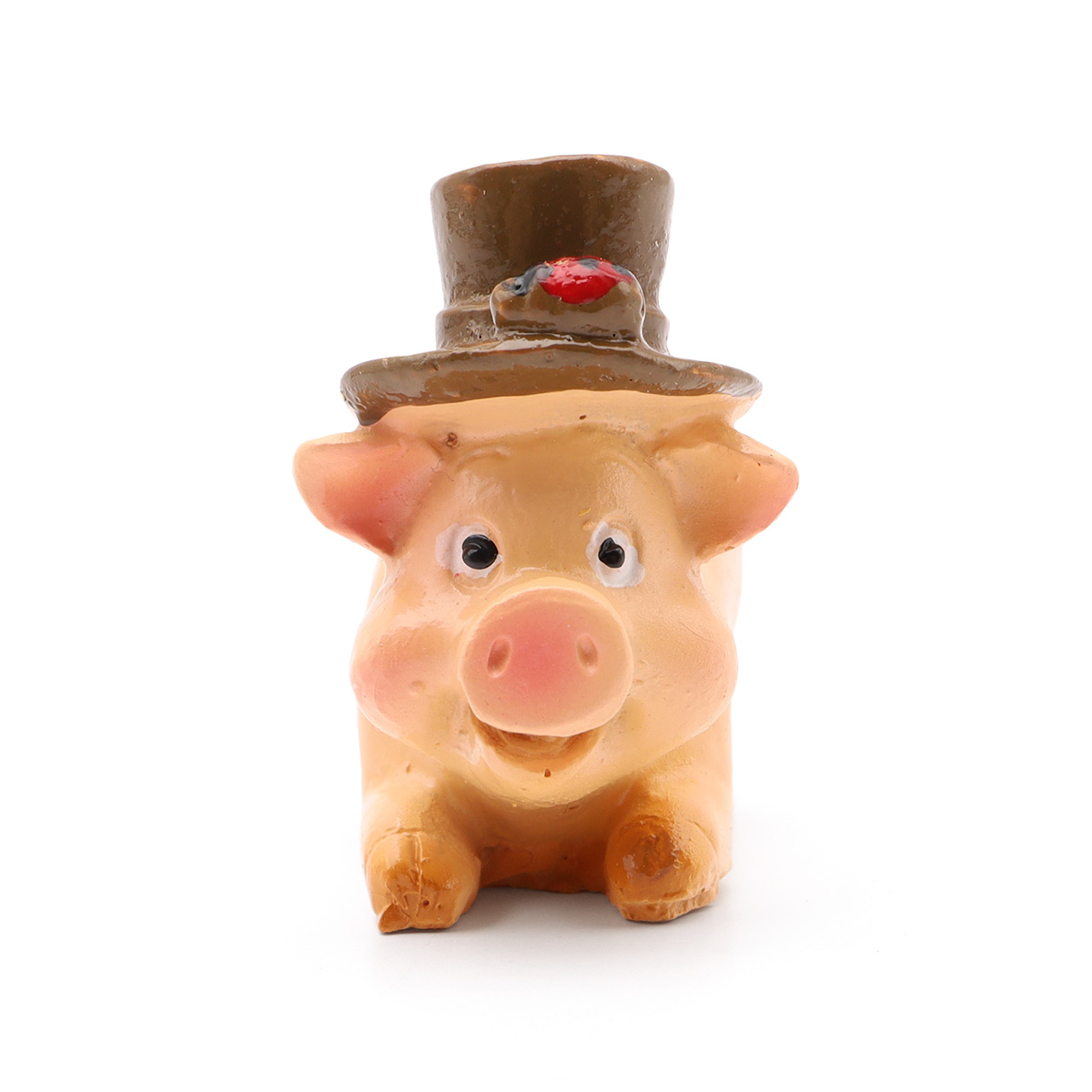AS15-02, Миниатюра. Свинка в коричневой шляпе с монетой 3,6*3,2*2см