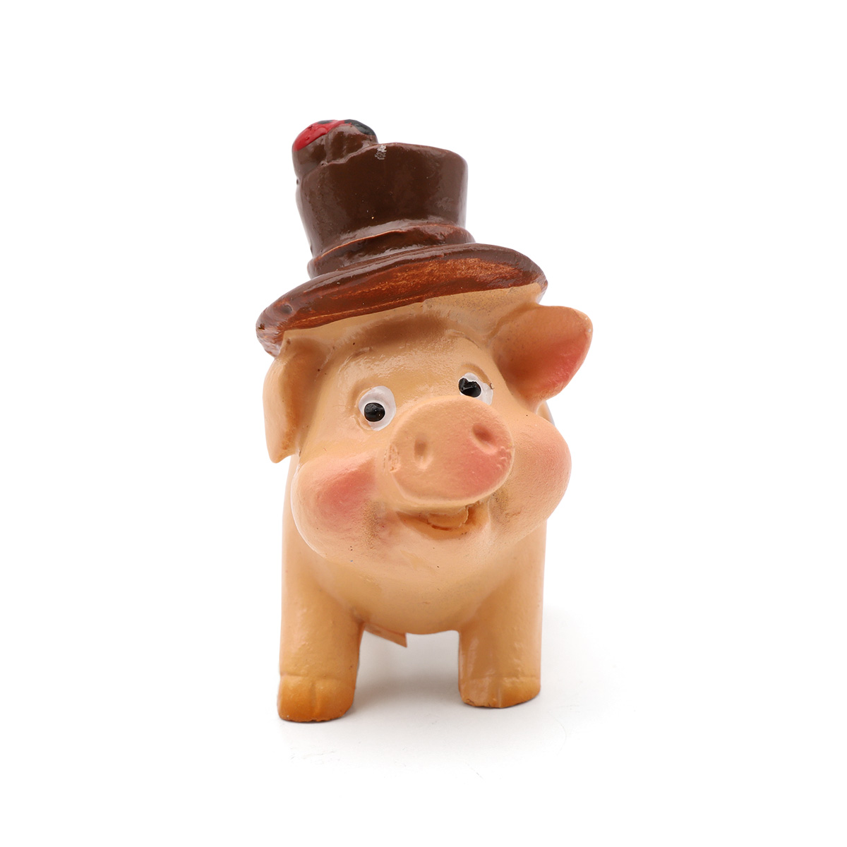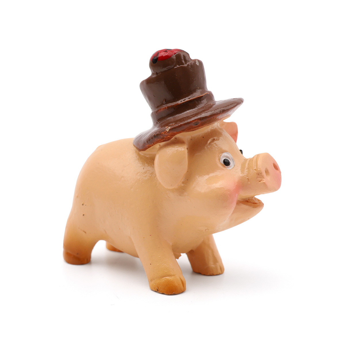AS15-02, Миниатюра. Свинка в коричневой шляпе с подковой 4*3,7см