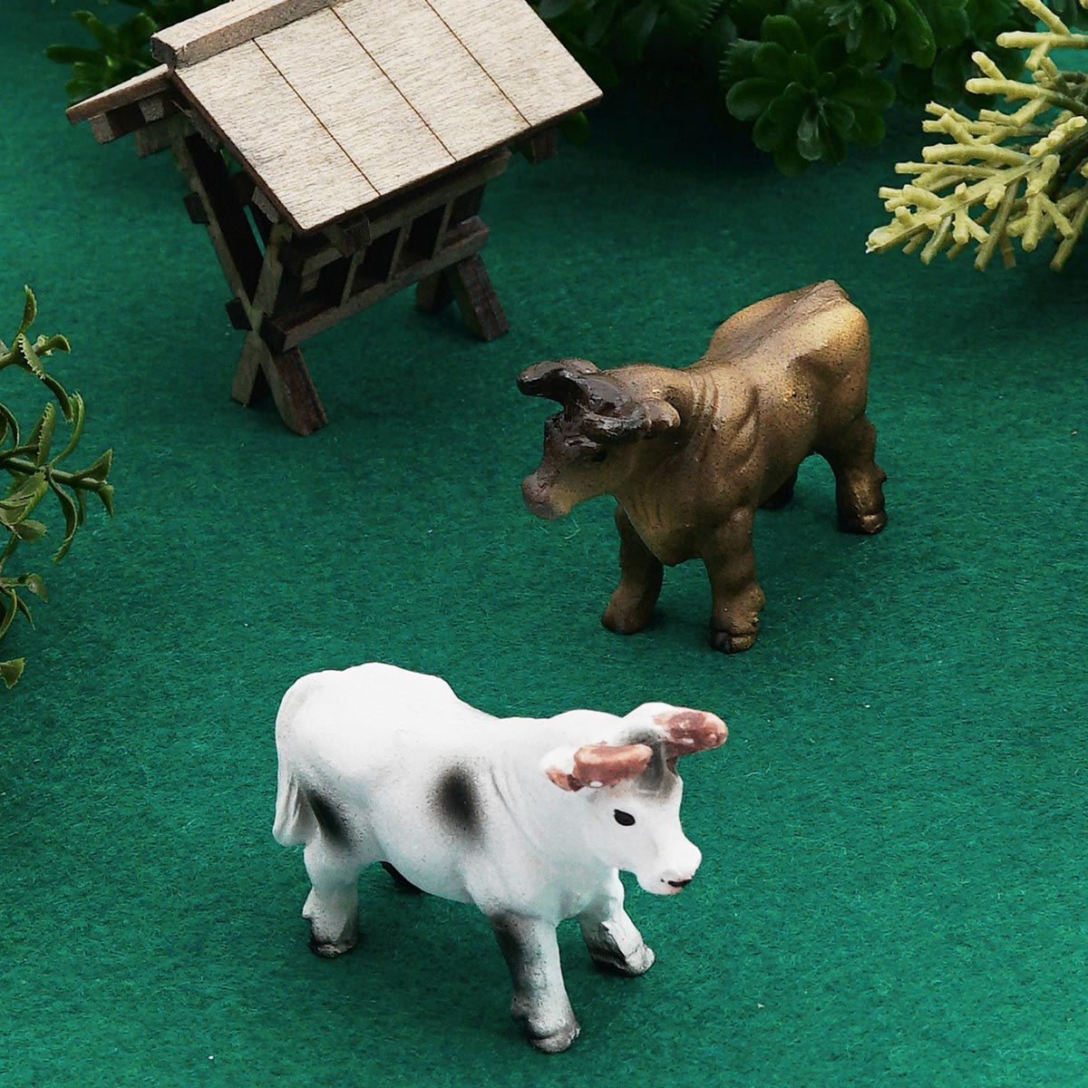 Миниатюры коровы и быка оживут на любой подходящей поверхности. В качестве основы можно использовать всё, что подскажет вам фантазия: шкатулку или тарелку. Для придания реалистичности и естественности основу можно декорировать мхом. Скрученные веточки, напоминающие извилистые тропинки, дополнят картину. Миниатюрные животные прекрасно впишутся в кукольный домик, станут очаровательным украшением садового участка, будут радовать глаз на балконе или уютной веранде. Поместите их в цветочный горшок, в красивое кашпо или даже на миниатюрную клумбу, и они преобразят окружающее пространство.