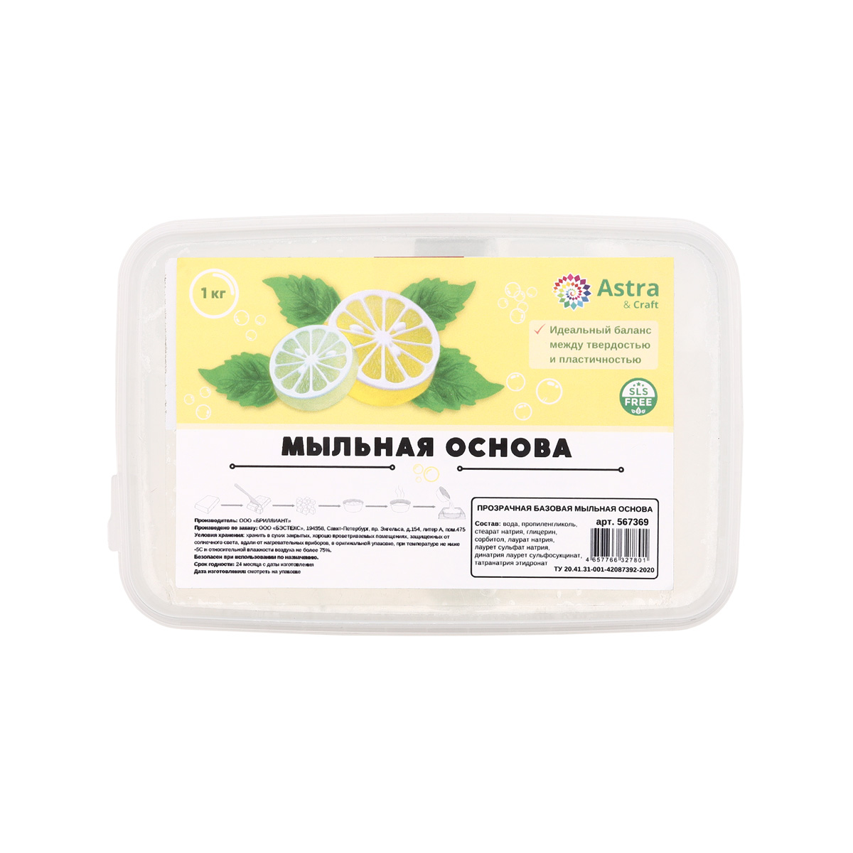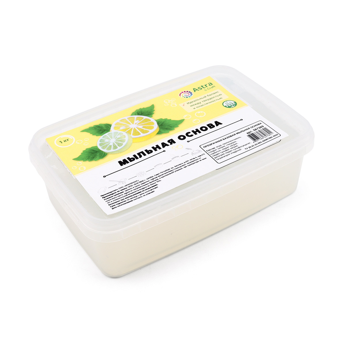Мыльная основа базовая прозрачная 1 кг, SLS free, Astra&Craft