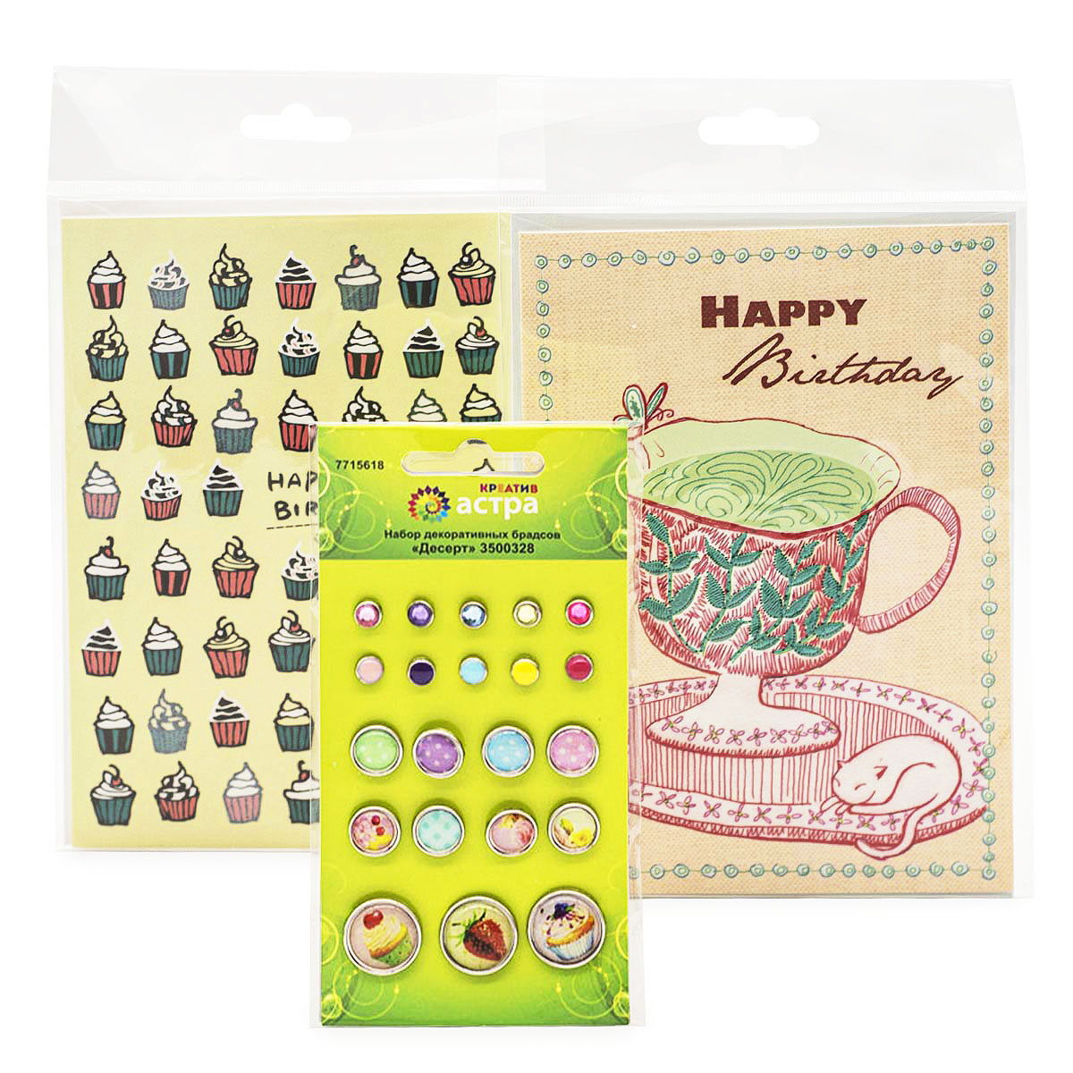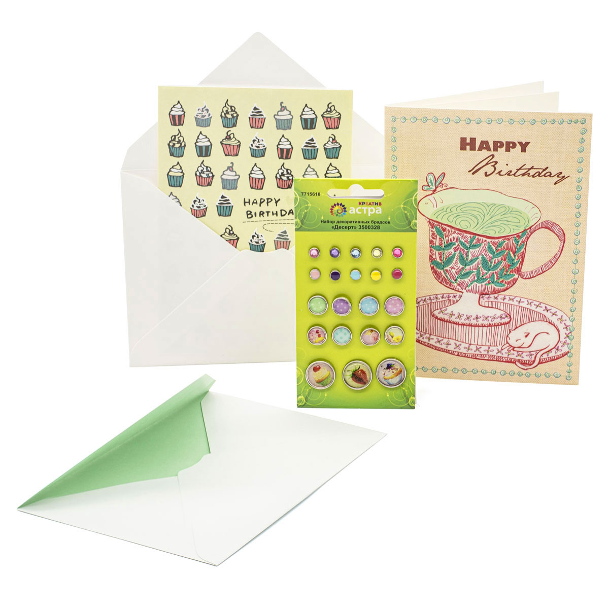 Набор для поздравления 'Открытки 'С Днем Рождения' в конверте' 12*17 см 2 шт, с набором брадсов