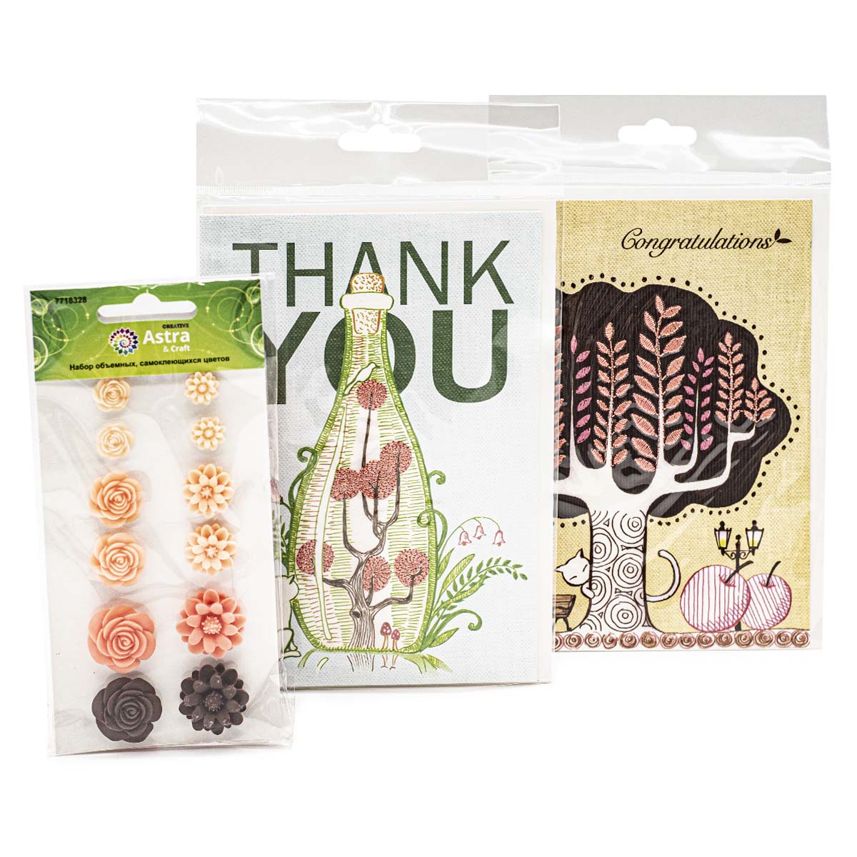 Набор для поздравления 'Открытки 'Спасибо' и 'Поздравляю' в конверте' 12*17 см 2 шт, с декоративными наклейками