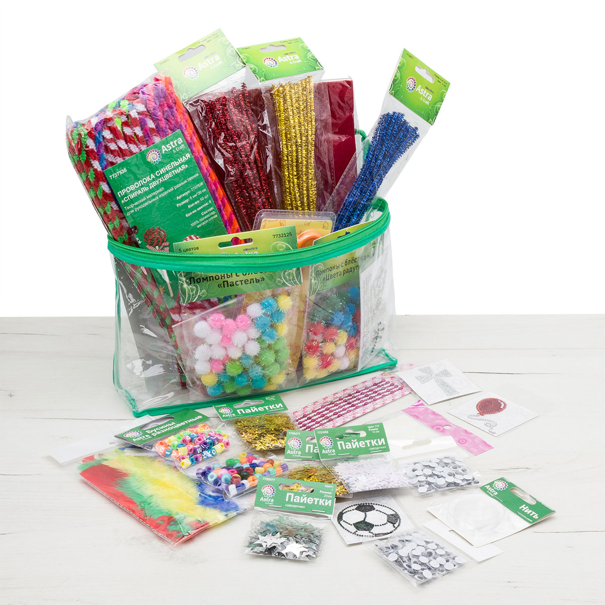 Набор для творчества от Astra&Craft, включающий в себя более 1000 элементов, представляет собой настоящий кладезь вдохновения для детей и взрослых, увлеченных рукоделием. Это не просто набор для поделок – это целая творческая мастерская в компактном формате!