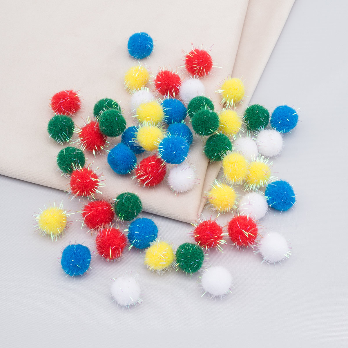 В наборе помпоны представлены в 5 цветах - комбинируйте их на свой вкус.