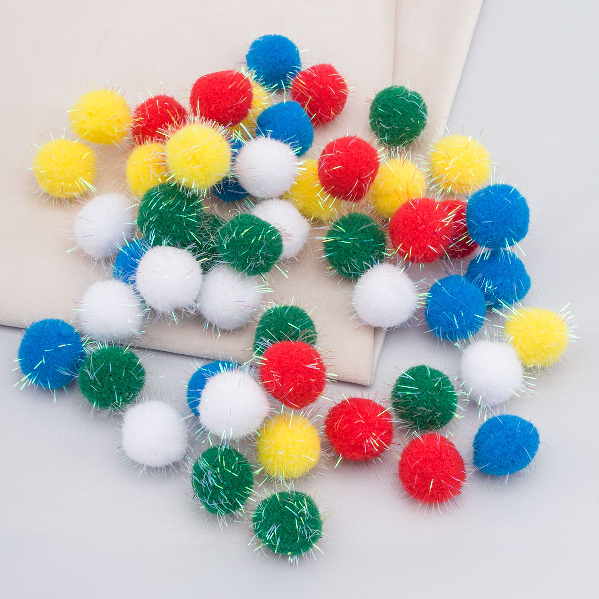 Помпоны с блестками 'Цвета радуги', 25мм, 5 цветов, 50шт, Astra&Craft