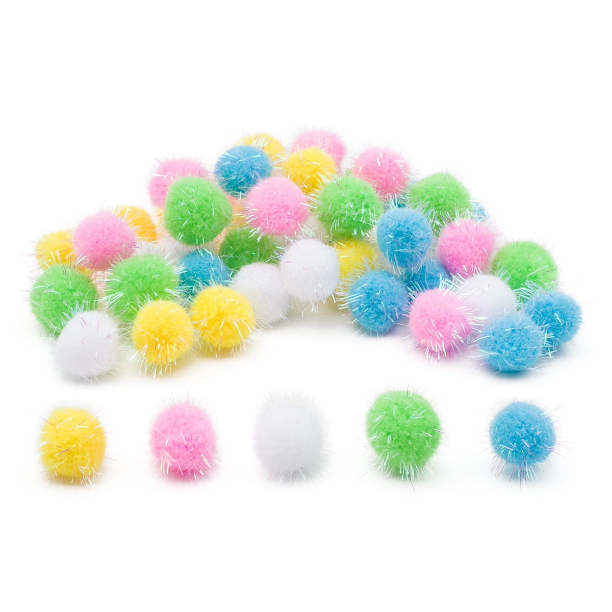 Помпоны с блестками 'Пастель', 25мм, 5 цветов, 50шт, Astra&Craft