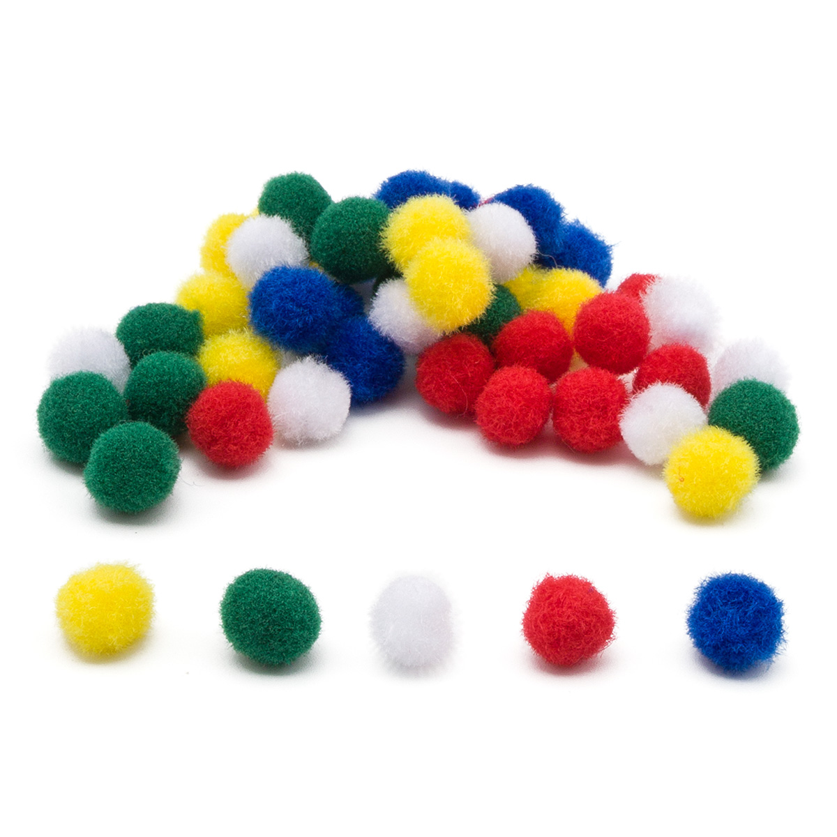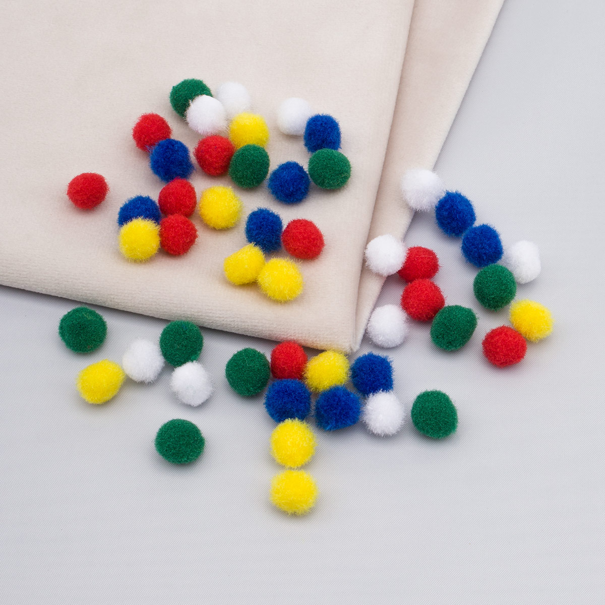 В наборе помпоны представлены в 5 цветах - комбинируйте их на свой вкус.