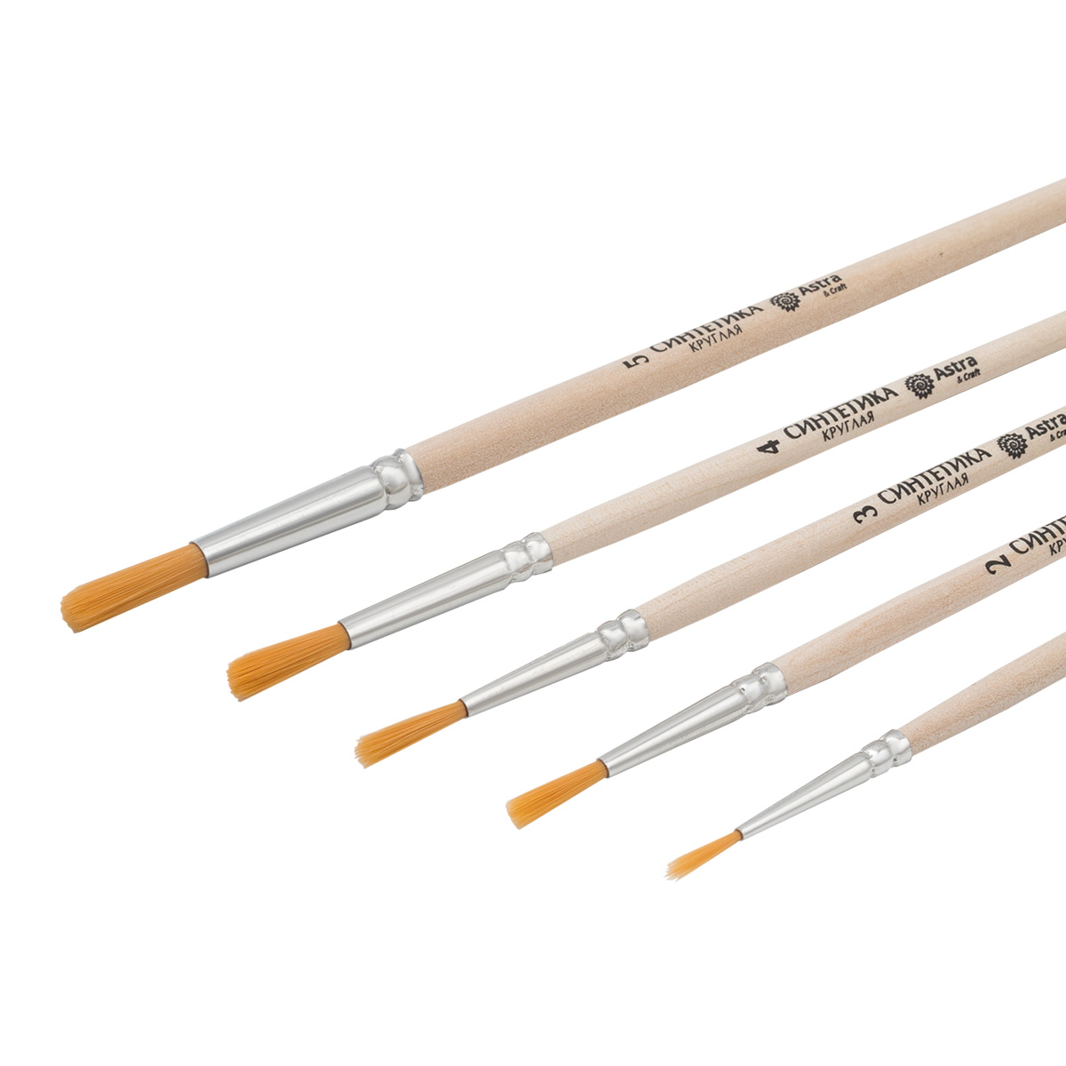 Набор кистей №4, синтетика (круглая №1,2,3,4,5), 5шт/уп, Astra&Craft