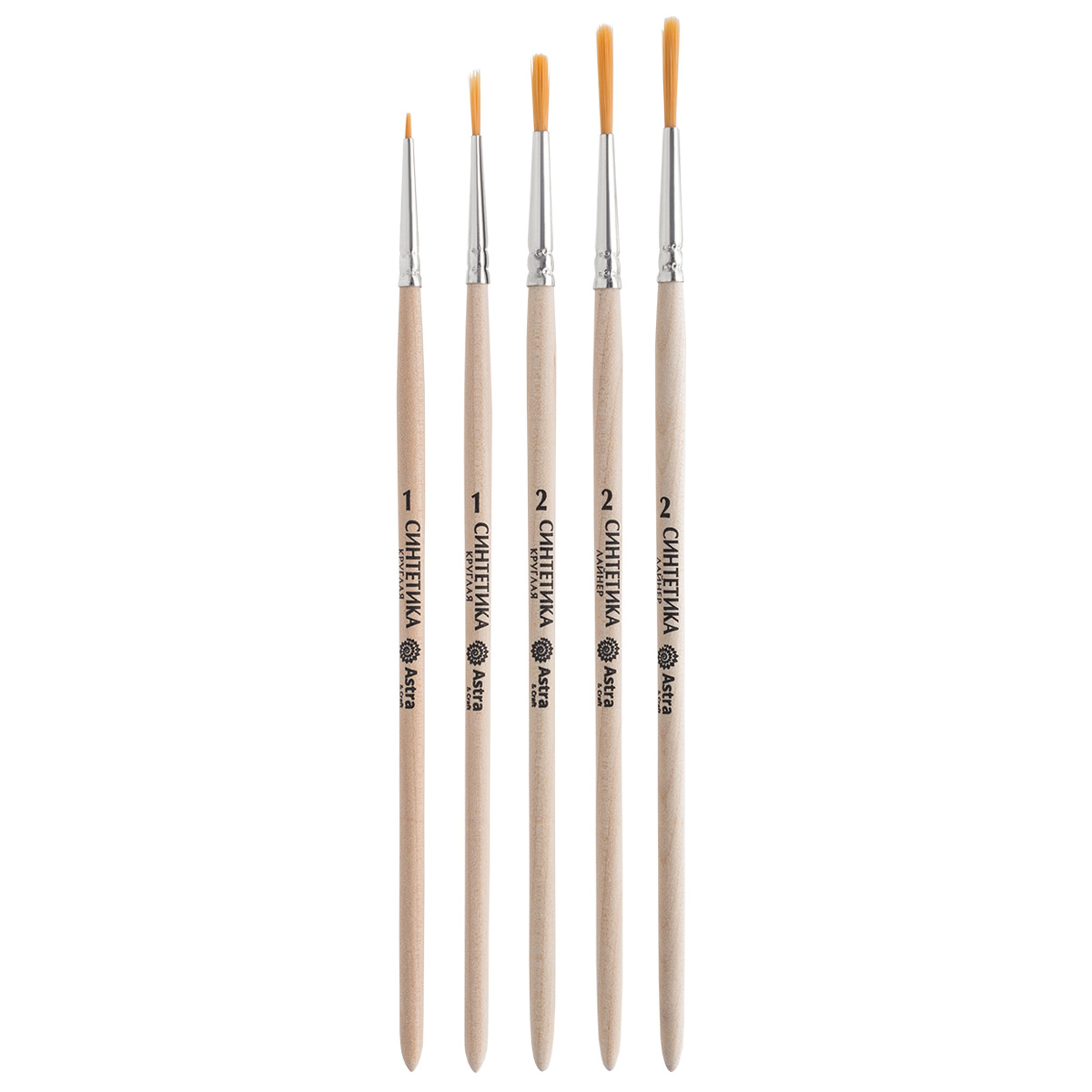 Набор кистей №5, синтетика (круглая №1,2, круглая №1 ук./в 0,5, лайнер №2,2), 5шт/уп, Astra&Craft