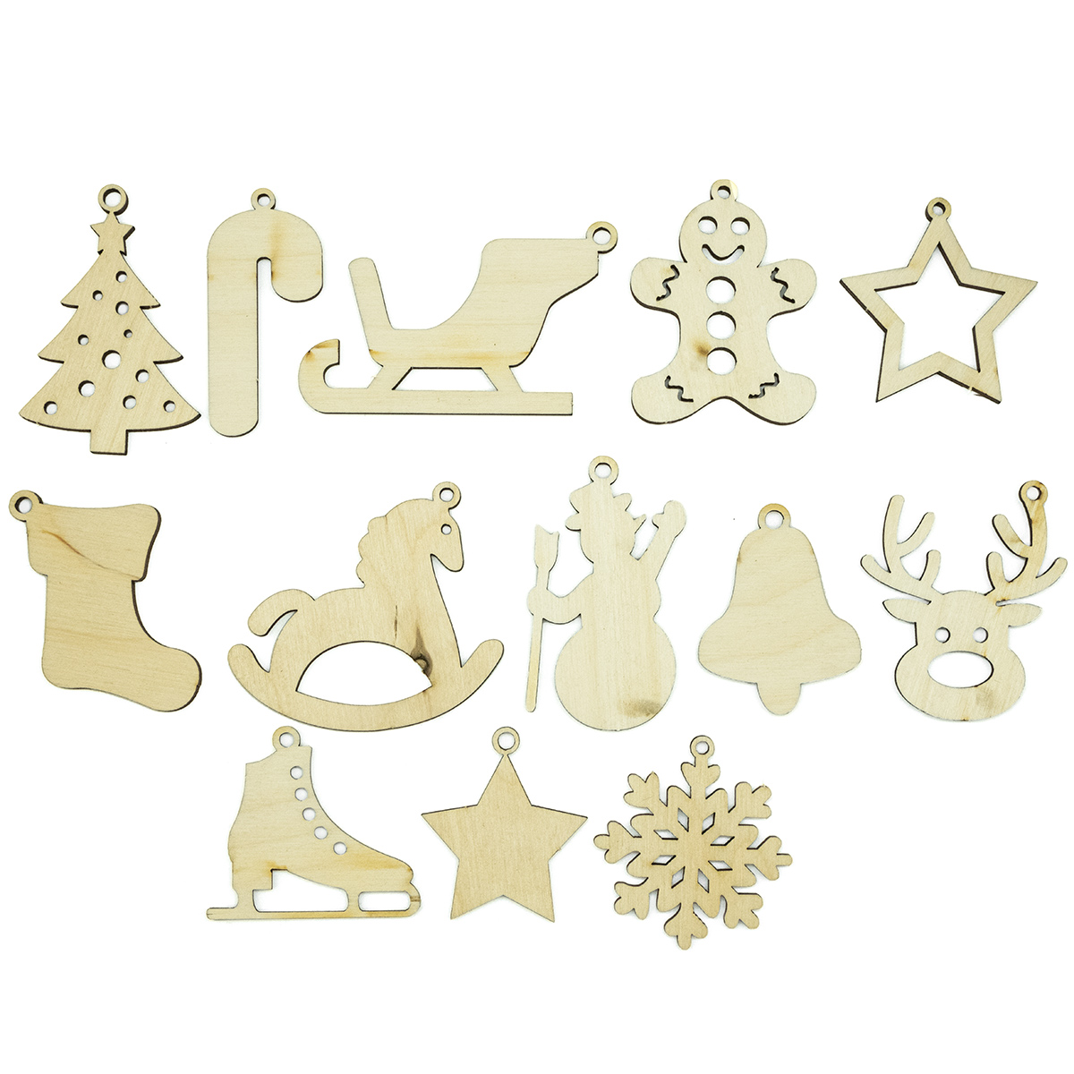 Набор плоских резных деревянных заготовок для декорирования ёлочных игрушек подходит для оформления панно, альбомов, фоторамок и других предметов интерьера к Новому году.
