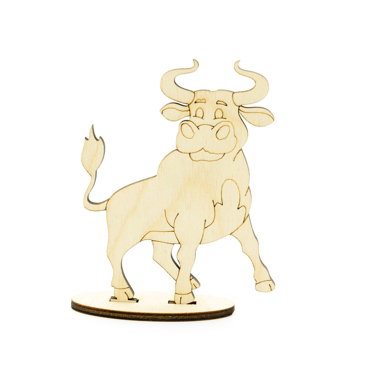 Резная заготовка в виде бычка, на подставке, с лазерной гравировкой. Потребуется простая сборка, при необходимости можно использовать клей.