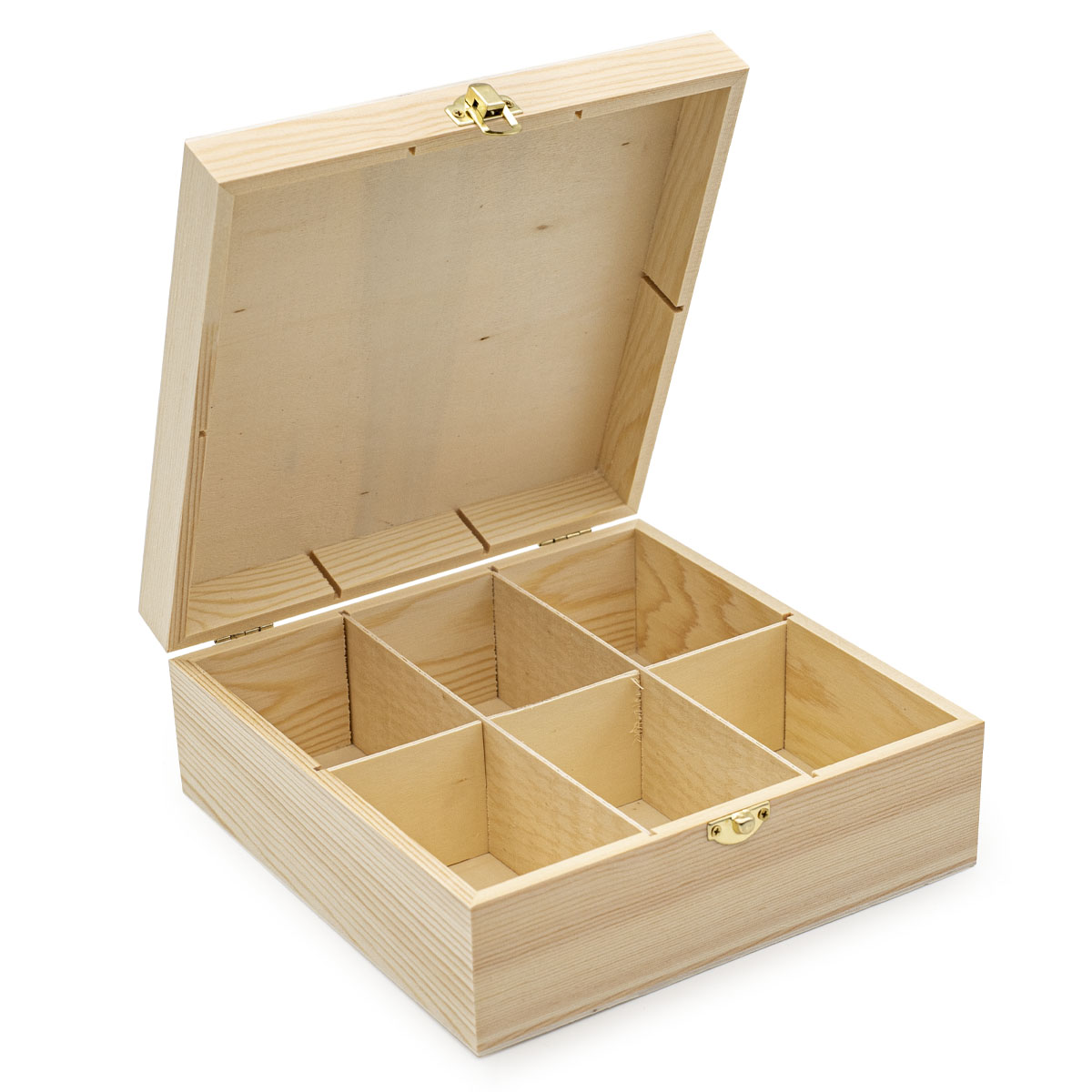 LYE015988 Шкатулка деревянная с шестью отсеками (сосна/фанера из тополя), 21.5*21.5*8.5см